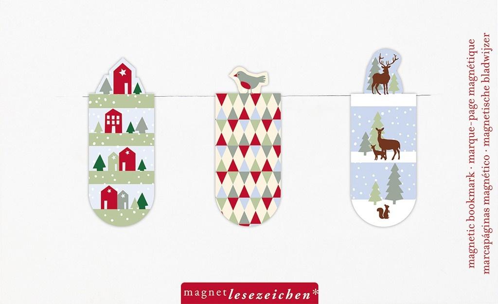 Zakładki magnetyczne - Zima 2. Pięknie ilustrowane zakładki z wystającymi, ozdobnymi elementami. Idealne do zaznaczania ostatnio czytanych lub ulubionych fragmentów książek. Doskonale sprawdzają się w indeksowaniu notatek, dokumentów w biurze, w szkole i w domu. Każdy zestaw zawiera 3 zakładki o różnych wzorach. Trzy zakładki magnetyczne w zestawie są tematycznie skoordynowane. Skomponuj własną kolekcję z zakładkami: Wiosna, Lato.