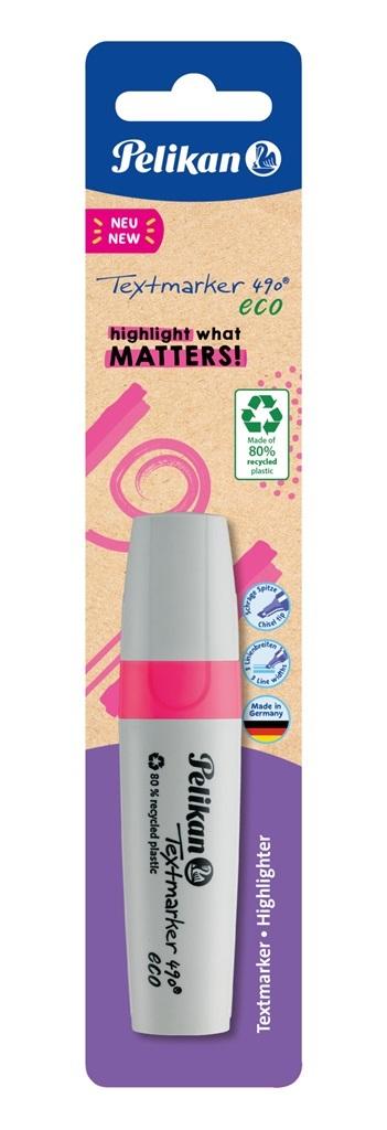 Zakreślacze Pelikan 490 Eco to połączenie wyrazistego stylu, wygody użytkowania i odpowiedzialności za środowisko. Aż 80% materiałów użytych do ich produkcji pochodzi z recyklingu, dzięki czemu są doskonałym wyborem dla osób, które chcą działać świadomie również podczas codziennej pracy czy nauki. Zakreślacz wyposażono w ergonomiczny uchwyt z wygodnym wgłębieniem, a skuwnka typu Twist-Off pozwala na szybkie otwieranie jedną ręką, przez lekkie przekręcenie kciukiem. Ścięta końcówka umożliwia pisanie w trzech szerokościach, a wodny atrament zapewnia intensywny kolor i szybkie schnięcie.