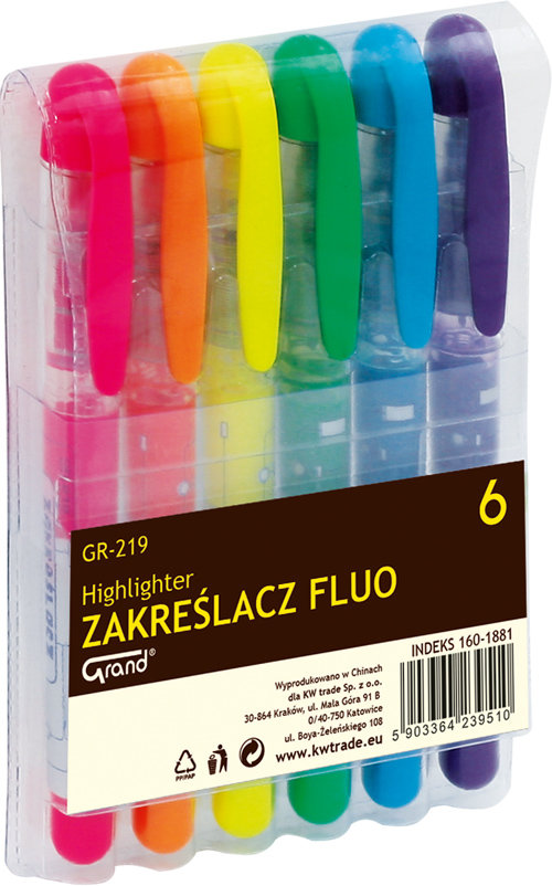 Opakowanie Zakreślacz fluo GR-219. Komplet 6 kolorów.