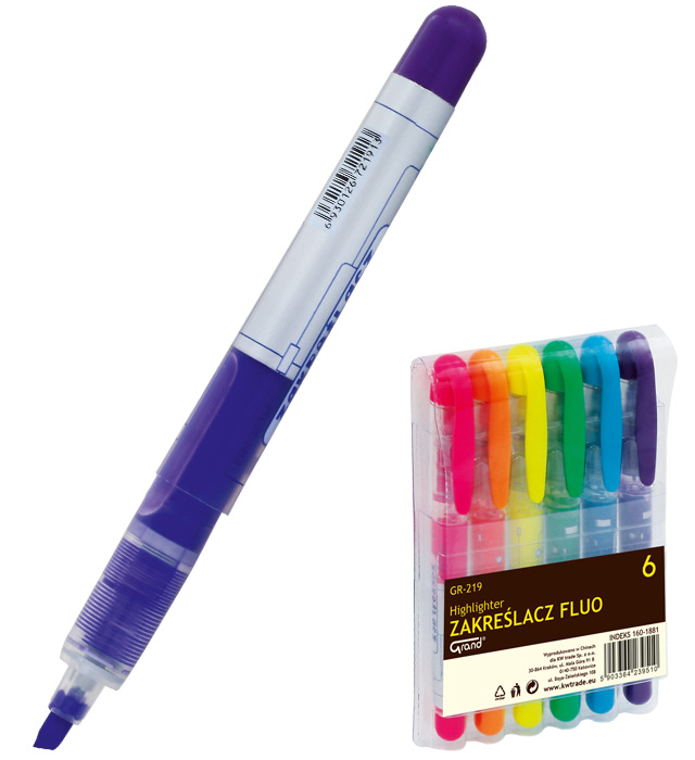 Zakreślacz fluo GR-219. Komplet 6 kolorów.