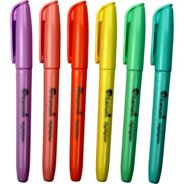 Zestaw 6 zakreślaczy w plastikowej obudowie. Ścięta końcówka, grubość linii pisania 1-4 mm. Pastelowe kolory, pakowane w plastikowe etui.