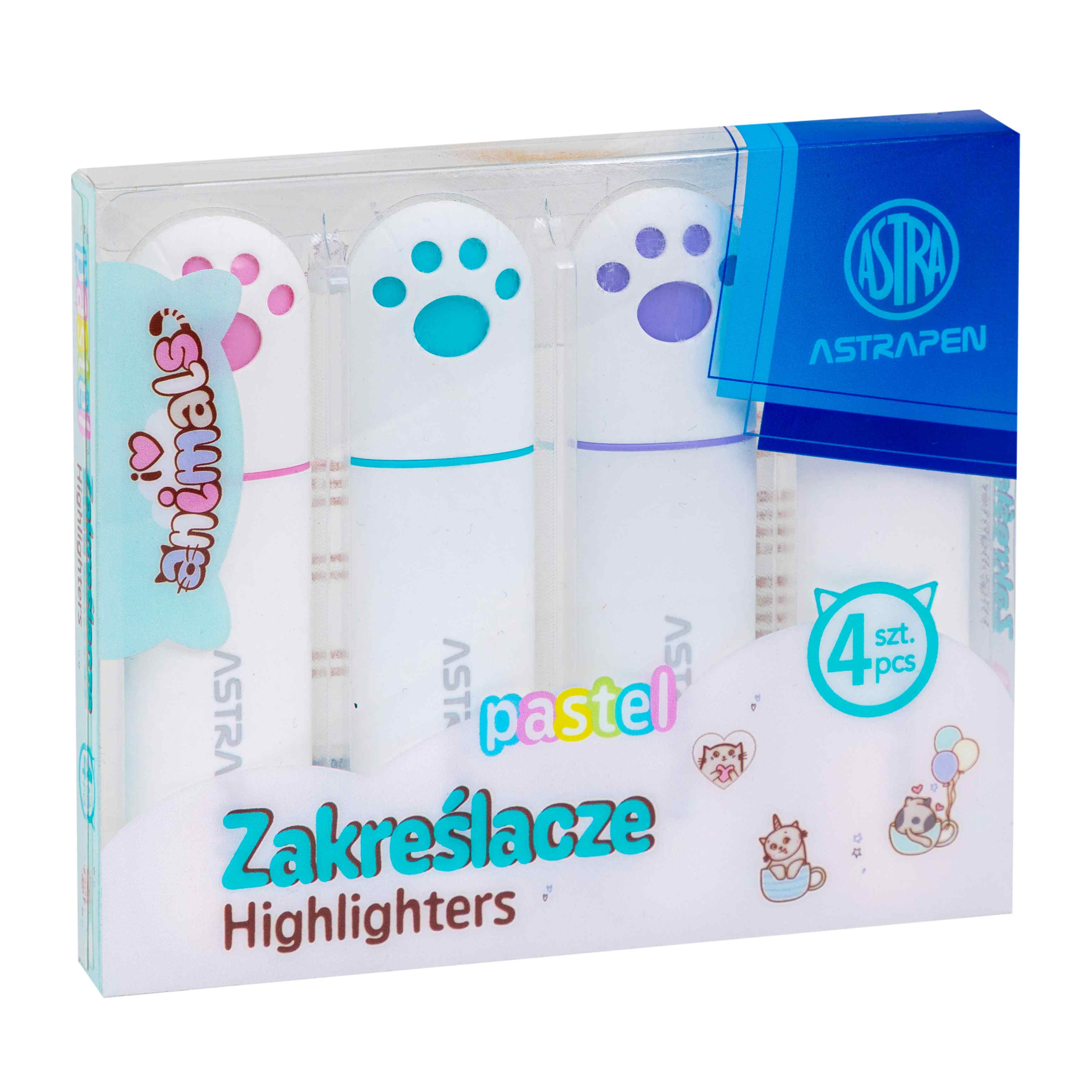 Opakowanie Zakreślacze z łapkami Astrapen Animals pastelowe 4 kolory