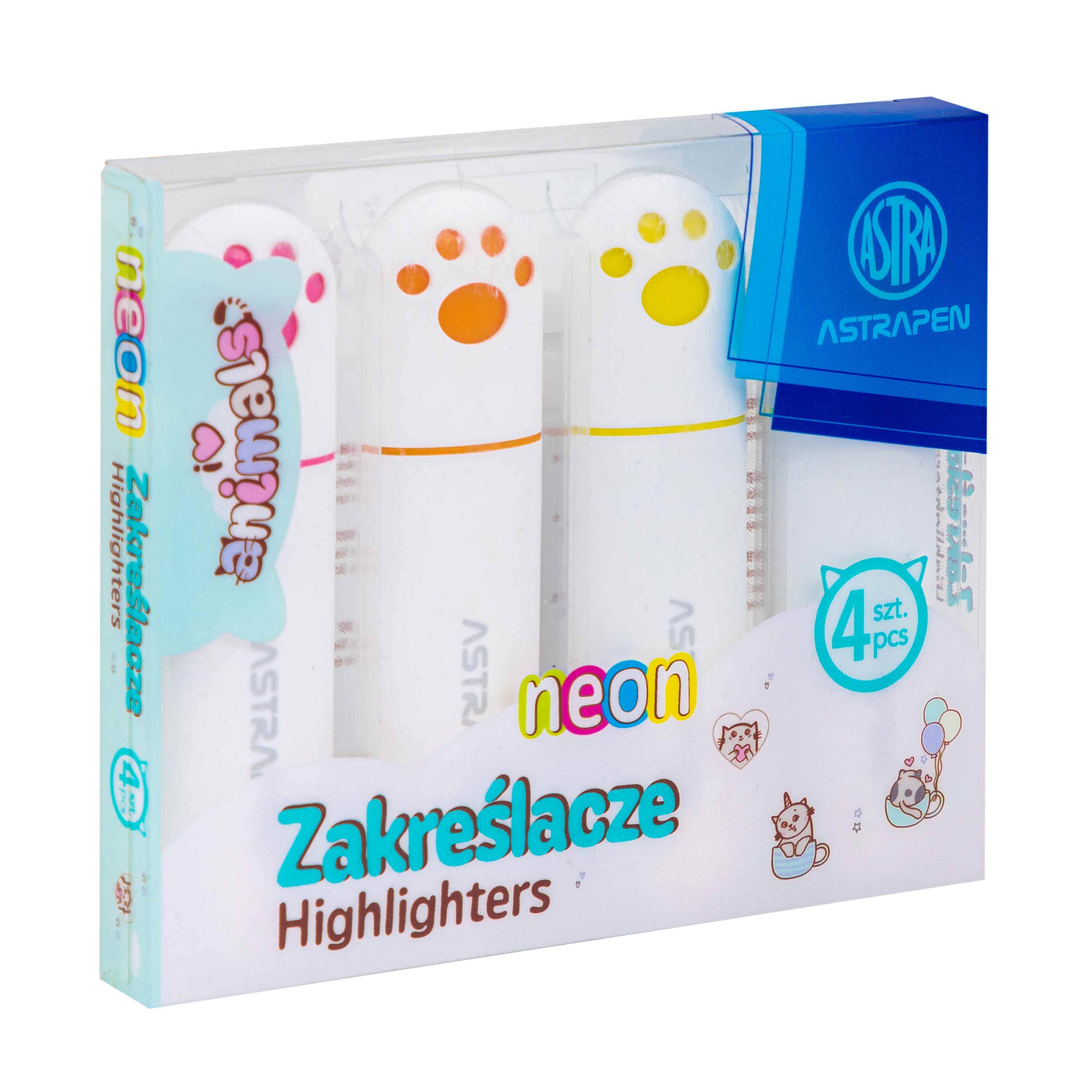 Opakowanie Zakreślacze z uszkami Astrapen Animals neon 4 kolory