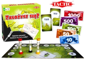 PRZEKONAJ SIĘ, KTO TO POTRAFI!W tej zabawnej grze rodzinnej wykonujesz różne zadania lub odpowiadasz na pytania. Inne osoby obstawiają twój sukces lub porażkę. Jeśli odgadną, wygrywają podwójną wartość obstawionych punktów. Twój sukces to także ekstra punkty dla ciebie!Założysz się? dzięki swojej interaktywności i zabawnym zadaniom wciąga tak dorosłych jak i dzieci. To gra zarówno na długie wieczory w rodzinnym gronie jak i na szaloną imprezę! Zawartość: 1 plansza, 288 kart zadań (144 zręcznościowych, 144 umysłowych), 12 kart TAK/NIETalia banknotów , 6 pionków, 1 notatnik, 1 kostka, 3 klepsydry. Gra przeznaczona dla 3 - 6 graczy w wieku 7+