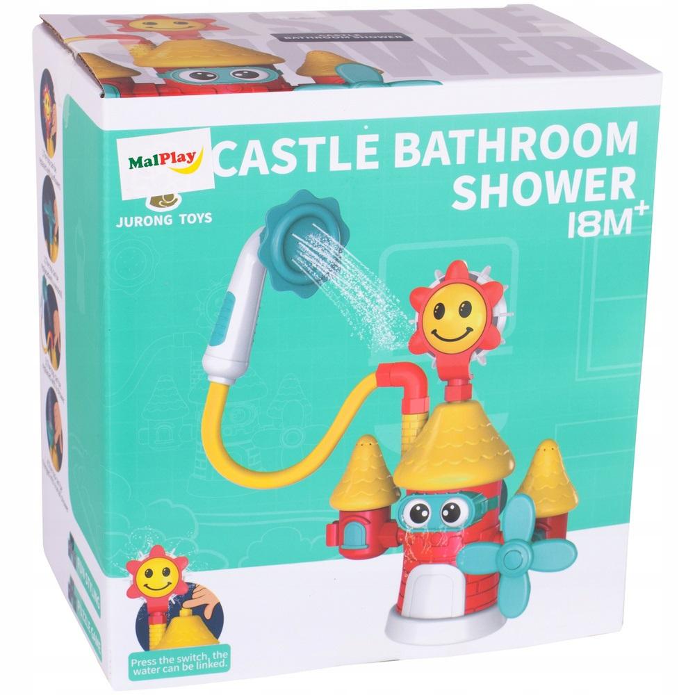 Wejdź do królestwa wodnej zabawy i odkryj wszystkie jego niespodzianki! Ten kolorowy zamek umożliwia zabawę aż na 4 różne sposoby, a to za sprawą dołączonych do zestawu końcówek, które można zamieniać ze sobą miejscami. Każda z końcówek tryska wodą w inny sposób. Znajdziemy tu uśmiechnięte słoneczko, wiatraczek oraz dwie końcówki prysznicowe, krótszą i dłuższą, z wężykiem. Wszystko co musisz zrobić to umieścić zabawkę w wodzie, aby była zanurzona na głębokość ok. 6cm i nacisnąć przycisk, znajdujący się na szczycie największej wieży. Przekonaj się jak wesoła może być kąpiel!