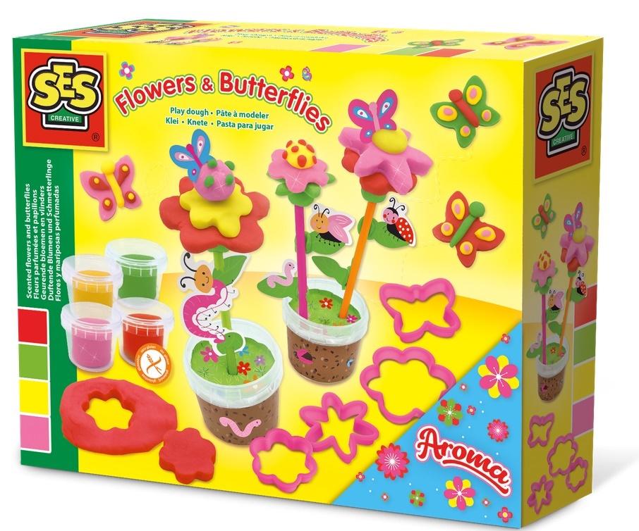 Zrób pęknie pachnące kwiaty i motyle za pomocą tego zestawu ciasto masy do zabawy SES Creative. Użyj noża, aby łatwo tworzyć piękne kwiaty i motyle w różnych kolorach z pachnącej i błyszczącej ciasto masy bez glutenu. Zabawne akcesoria zmieniają pojemniczki z ciasto masą w doniczki, a Ty możesz dodać słodkie owady, aby poczuć się jak w motylkowym ogrodzie.