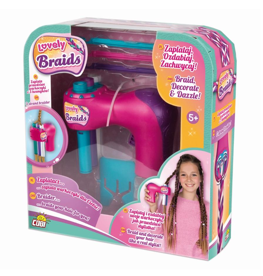 każdy warkocz włosów tworzy piękny oplot z 3 włókien. Po zakończeniu warkocza dodaj wykończenia za pomocą gumek i fioletowych i różowych klipów. Jeśli chcesz być bardziej kreatywny, możesz również dodać wstążki do warkocza. Łatwo to zrobić, po prostu włóż włosy do 3 probówek za pomocą separatora włosów i haczyków, a będziesz gotowy do pracy! naciśnij przycisk warkocz i natychmiast pojawi się warkocz. Oplot i udekoruj swoje włosy jak prawdziwa stylistka z łatwymi warkoczami. Zestaw obejmuje; 1 x łatwe plecionki w oplocie, 8 x wstążki, 3 x haczyki, 3 x rozsuwane tubki separatora, 1 x splitter, 1 x instrukcja, 10 x klipsy i 20 x elastyczne opaski. Wymaga 3 baterii AAA (brak w zestawie).