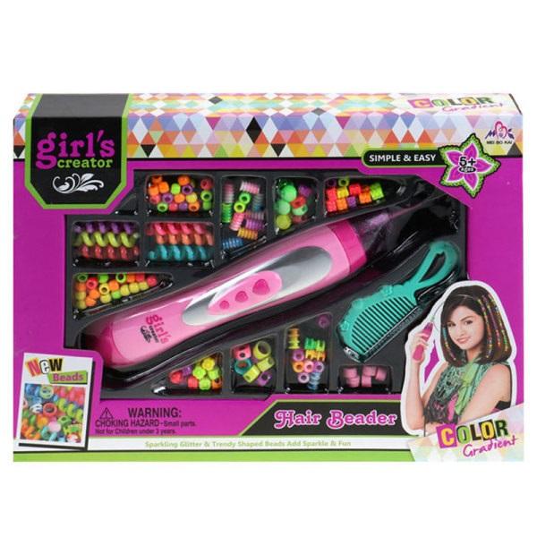 Zestaw do stylizacji włosów z zaplatarką oraz modnymi koralikami na pewno przypadnie do gustu każdej dziewczynce. Zaplatarka ułatwia nawlekanie koralików na kosmyki włosów. Można bez wysiłku stworzyć niesamowite, kolorowe pasemka oraz cudowne, efektowne fryzury. Dzięki różnorodnym elementom, mała modnisia wykorzysta każdego dnia inny oryginalny pomysł na stylizację włosów. Zestaw zagwarantuje wspaniałą fryzjerską zabawę.