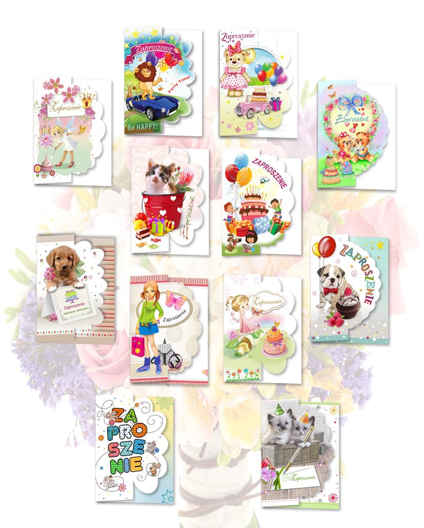 Zaproszenie brokat Dzieci 10 szt. mix