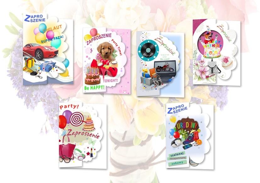 Zaproszenie brokat Młodzieżowe 10 szt. mix