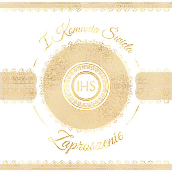 Zaproszenie w formacie kwadratu 1 5x 15 cm. Front złocony, w zestawie z wysokiej jakości kopertą. Pakowane po 5 sztuk.