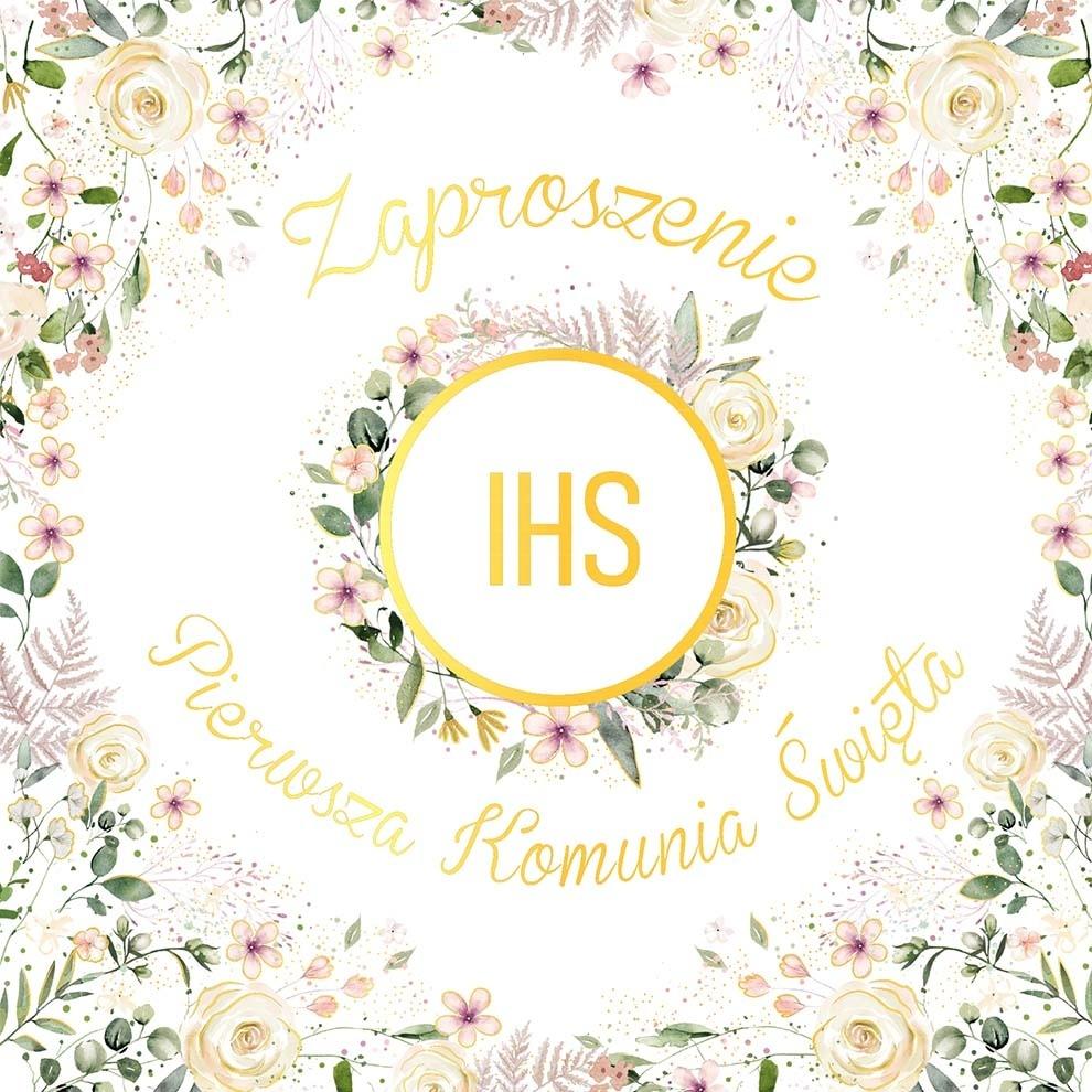 Zaproszenie KW - Komunia kielich w kwiatach 5szt
