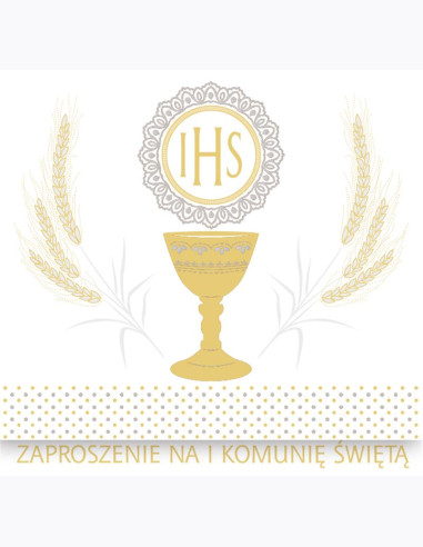Zaproszenie kwadrat ZKW 120x120 Komunia zest. 57188 Dziecięce - Chłopiec, Dziewczynka, Grafika, Religia, Tłoczenie, Złote