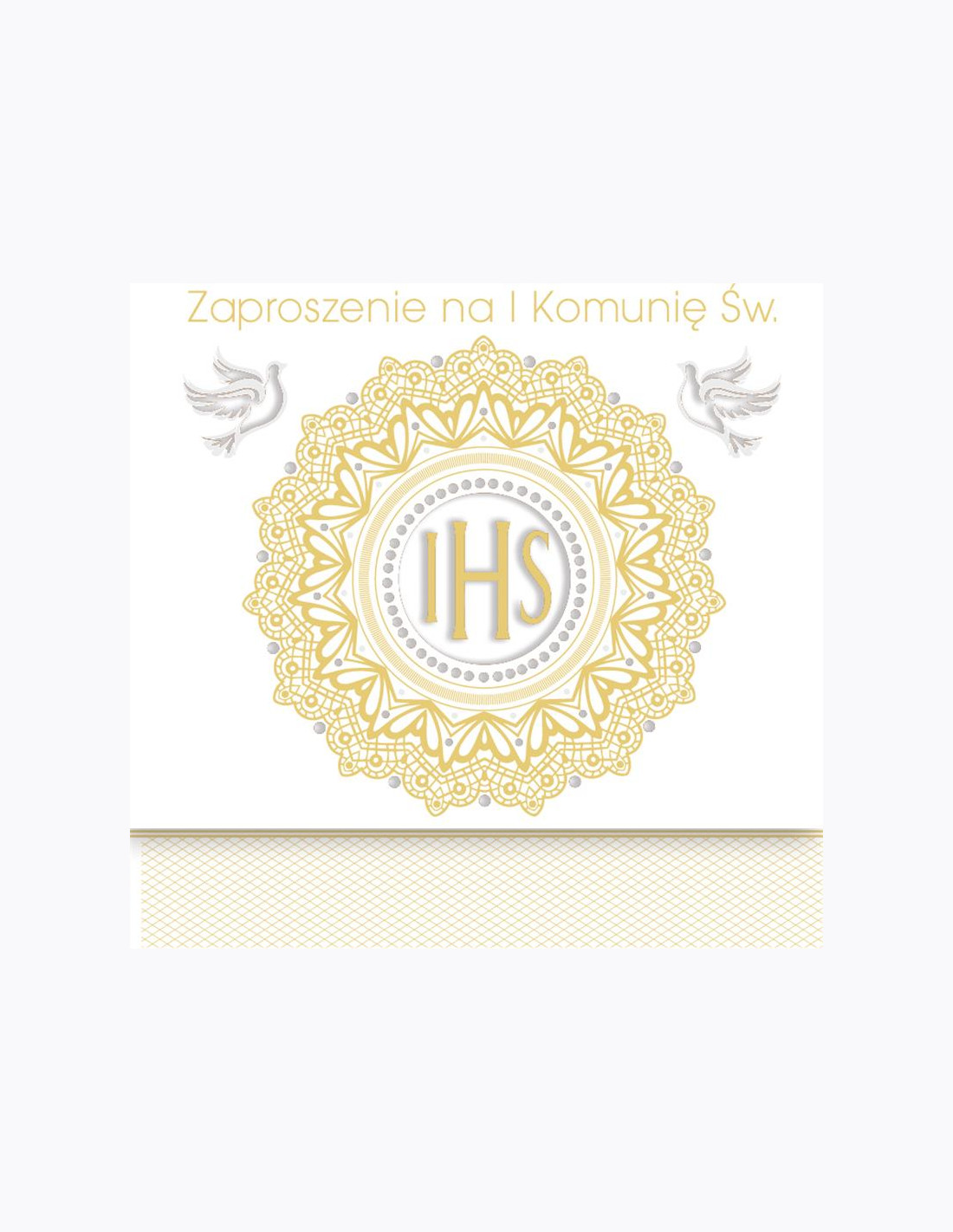 Zaproszenie kwadrat ZKW 120x120 Komunia zest. 57190 Dziecięce - Chłopiec, Dziewczynka, Grafika, Religia, Tłoczenie, Złote