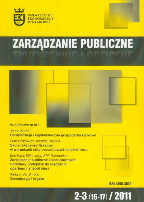 Centralizacja i kapitalistyczna gospodarka rynkowa Skutki ekspansji fiskalnej w warunkach stóp procentowych bliskich zera Zarządzanie publiczne i sieci powiązań. Podstawy podejścia do rządzenia opartego na teorii sieci Demokracja i kryzys.