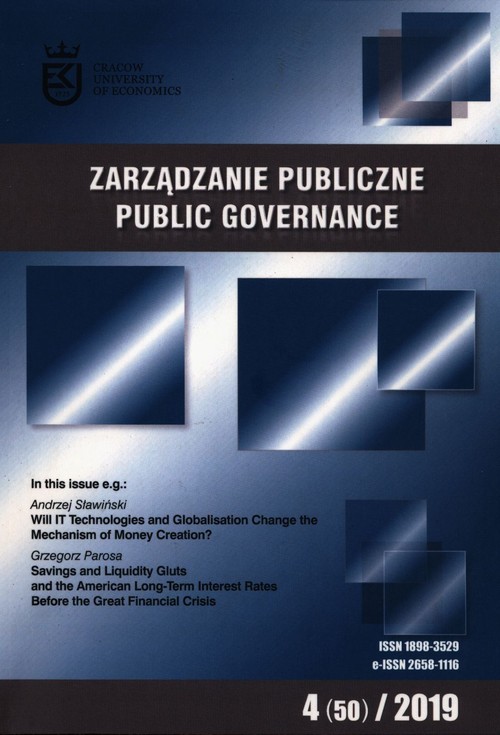 Andrzej Sławiński: Will IT Technologies and Globalisation Change the Mechanism of Money Creation? Bartłomiej Biga: Patent Races and Institutional Solutions of Health Care Policy in Developed Countries Krzysztof Wąsowicz: The Effectiveness of Municipal Waste Management in Polish Cities Robert Gawłowski, Paweł Modrzyński: Innovation in Public Service Delivery in Terms of Shared Services Centres in Local Governments: A Case Study of the City of Toruń (Poland) Iana Okhrimenko: Social Choice, Social Sustainability, and Why the Neoclassical Approach Fails to See the Difference Grzegorz Parosa: Savings and Liquidity Gluts and the American Long-Term Interest Rates Before the Great Financial Crisis