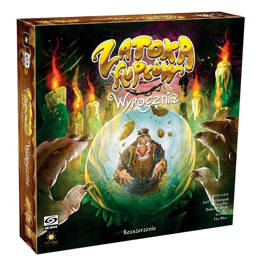 Wyrocznia to nowy kupiec, którego możesz wykorzystać w grze Zatoka kupców. Postać ta opiera się na mechanice gier typu roll & write ze specjalnym pisakiem, suchościeralną planszą i wyjątkową tacą na kości. W każdej turze rzucasz do swojego naczynia do wróżenia garść run, a następnie sprawdzasz wyniki na swojej planszy, aby wykonać akcje i tym samym - przewidzieć przyszłość!