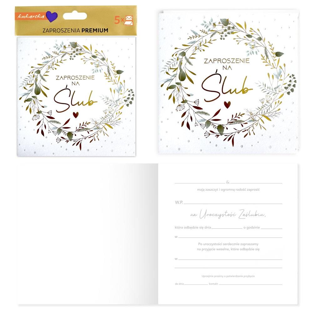 opakowanie: woreczek zawierający 5 sztuk zaproszeń z kopertami,