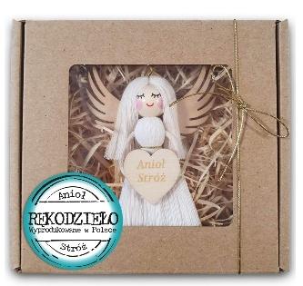 Anioł Stróż - Rękodzieło wyprodukowane w Polsce. Figurka Anioła o wymiarach 10x7cm, ułożona na wełnie drzewnej, całość zapakowana w ekologiczne pudełeczko z okienkiem opasane złotym sznureczkiem.