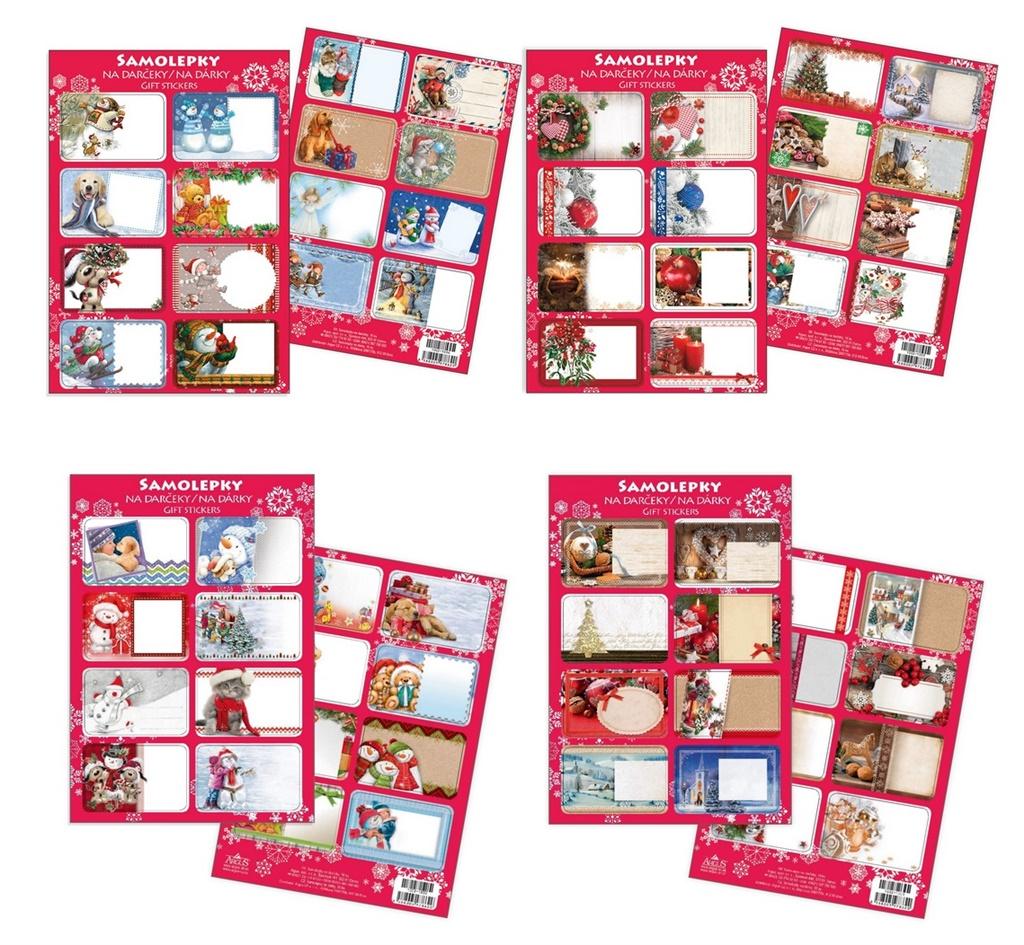Ozdobne naklejki z miejscem na podpis. Motyw świąteczny. Paczka zawiera 16 naklejek.