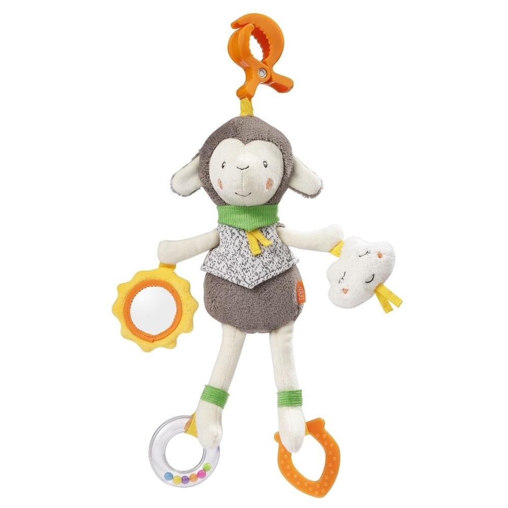 Słodka Owieczka, to prawdziwa uczta dla Twojego maluszka! Bezpieczne lusterko, mały gryzak, który przyniesie ulgę na etapie ząbkowania oraz grzechotka z tęczowymi perełkami, na pewno zainteresuje Twojego maluszka. Zawieszkę za pomocą praktycznego klipsa, można zamontować w dowolnym miejscu. W dolnej części wita nas aksamitna w dotyku, chmurka, która po naciśnięciu delikatnie popiskuje. Różne wzory, kontrastujące kolory i zróżnicowane powierzchnie zachęcają do odkrywania, chwytania i ściskania, co rozwija zdolności poznawcze. W okrągłym bezpiecznym lusterku Twoje dziecko może się przeglądać. Z zachowaniem wielkiej dbałości o szczegóły, zabawka, oferuje wszystko, co sprawia, że dziecięce serduszka biją szybciej. Pomaga zrozumieć świat, w ciągu dnia i wieczorami przed snem.