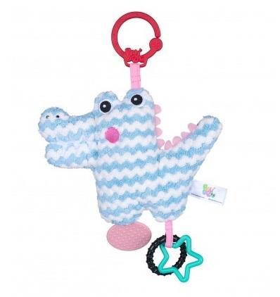 Uroczy Krokodylek w pastelowych kolorach zabawi malucha, towarzysząc mu w każdym miejscu! Pluszak posiada 3 gryzaczki i dzwoneczek, dzięki czemu wydaje wesoły dźwięk przy potrząsaniu. Milusi materiał, z którego wykonany został Krokodyl, zachęca do przytulania zabawki, a jego fakturowana powierzchnia, stymuluje zmysł dotyku dziecka. Praktyczny uchwyt pozwala przymocować zawieszkę w dowolnym miejscu.