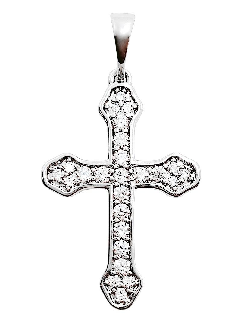 Posrebrzany Krzyżyk z Cyrkoniami w Oprawie - Subtelne Zdobienie (26x17 mm)