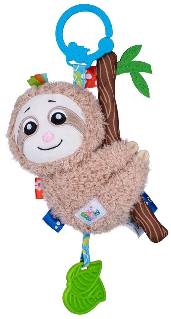 Ten zabawny zwierzak umili najmłodszym każdy dzień czy to w domu, czy na spacerze. Posiada mięciutkie futerko i kilka kolorowych metek. Zabawka wykonana została z materiałów o zróżnicowanych fakturach, co stymuluje zmysł dotyku i wzroku malucha. Ukryty w leniwcu dzwoneczek rozweseli miłym dźwiękiem, za każdym razem gdy dziecko potrząśnie zabawką, zaś doczepiony do zwierzaka miękki listek - gryzak, z pewnością przyda się podczas ząbkowania. Zawieszka wyposażona została w praktyczny uchwyt, umożliwiający przyczepienie jej w wybranym miejscu.
