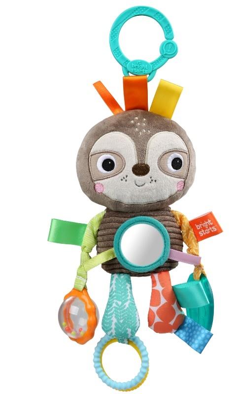 Uroczy, miękki leniwiec z aktywizującymi zawieszkami o różnych kolorach i fakturach, lustereczkiem na brzuszku i gryzakami.