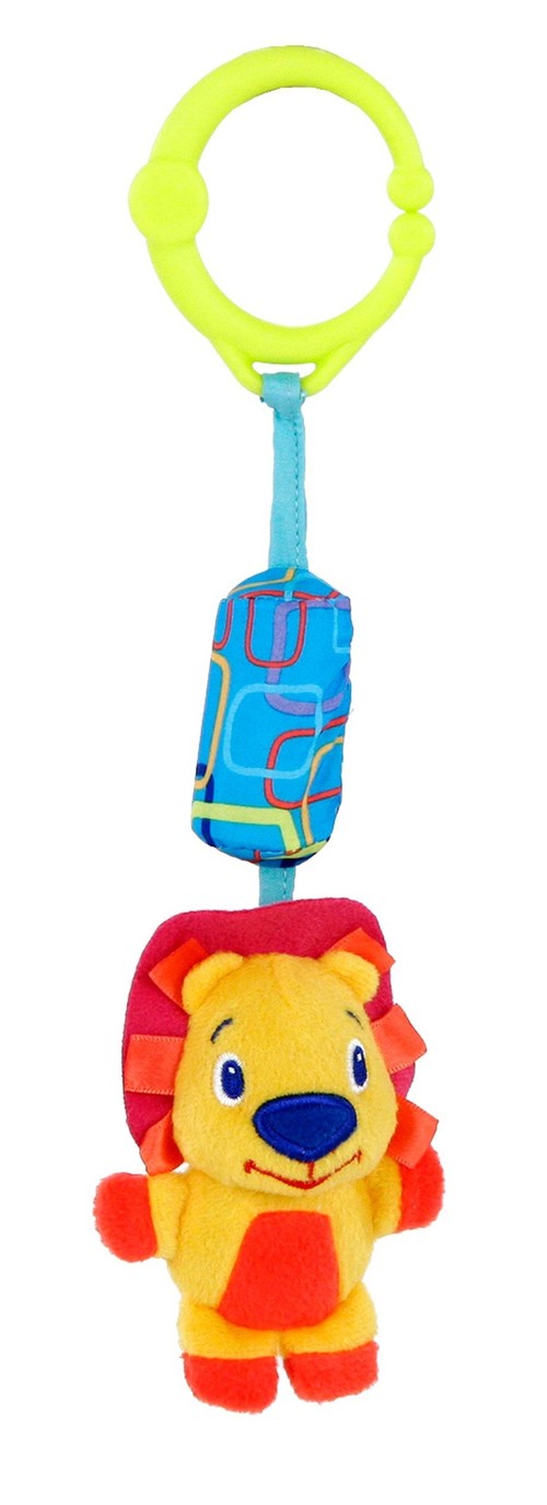 Zabawne pluszowe postacie wydają delikatny dźwięk dzwoneczków przy potrząsaniu. Wygodny uchwyt w kształcie kółka pozwala na umocowanie zabawki w dowolnym miejscu i zabranie jej ze sobą. Kolorowe frędzelki zachęcają do nauki chwytania. Zabawka występuje w 2 wersjach (lew lub hipopotam). Zabawka przeznaczona dla dzieci od dnia narodzin.