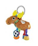 Kolorowa zawieszka wykonana jest z miękkiego materiału. W jednym z kopytek znajduje się grzechotka w drugim dzwoneczek, które wydają dźwięki przy potrząsaniu, dodatkowo każde z nich zawiera elementy szeleszczące. Rogi łosia pełnią funkcję gryzaczków. Do ogonka doczepione są łatwe do uchwycenia kółeczka ,które dzięki zróżnicowanej powierzchni mogą służyć jako gryzaczki. Dodatkową atrakcją jest piszczałka ,która znajduje się w brzuszku łosia. Szeleszczące elementy, różne struktury i kolory zachęcą każdego malucha do zabawy, pobudzając i wspomagając przy tym rozwój zmysłu wzroku, dotyku i słuchu. Wygodny uchwyt umieszczony w zabawce pozwoli na zabranie jej wszędzie ze sobą. Zabawka przeznaczona dla dzieci od dnia narodzin.