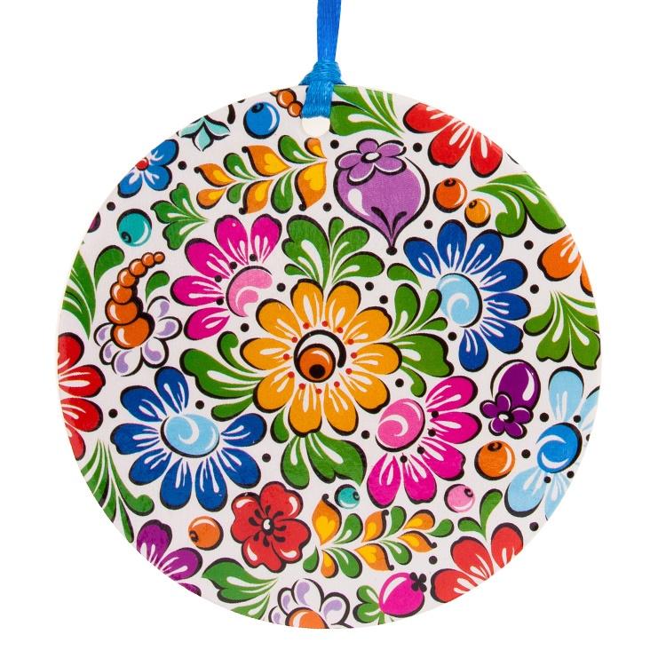 Ozdoba choinkowa opolska - kolorowe kwiaty z opolskich kroszonek : wzór inspirowany tradycyjnymi dekoracjami ludowymi z opolskich kroszonek,