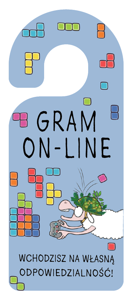 Dwustronna zawieszka na klamkę wykonana z grubego kartonu, zapakowana w woreczek foliowy.