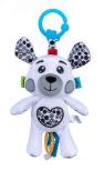 Psiak przyjaciel zadba o spokojny sen maluszka. Zdobią go kontrastowe wzory, które stymulują zmysł wzroku bobasa oraz kolorowe metki o zróżnicowanej fakturze. Doczepione do zabawki gryzaczki przyniosą ulgę obolałym dziąsełkom ząbkującego maleństwa. Piesek odtwarza piękną kołysankę, która ułatwi dziecku zasypianie, a praktyczna klamra pozwoli zająć mu wygodne miejsce w każdym dziecięcym łóżeczku czy wózku. Zabawka przeznaczona dla dzieci od dnia narodzin.
