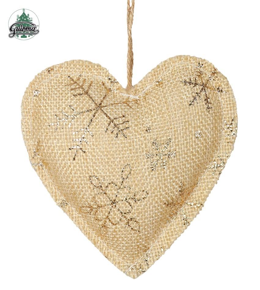 Urocze jutowe serduszko ze złymi elementami - zawieszka 8 cm.
