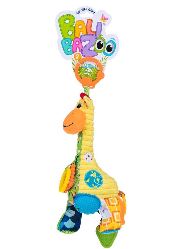 Żyrafka Gina kocha wszystkie maluchy i potrafi ukołysać je do snu grając słodką kołysankę. Wystarczy pociągnąć jej ogonek, aby dziecięcy pokój wypełniły piękne dźwięki. Ten przyjazny pluszak posiada różne elementy, którymi zabawi bobasa: przyjazne lusterko, plastikowe kółeczko i kwadracik z wypustkami, a nawet miękki gryzaczek. Pomysłowa zawieszka pozwoli jej zająć wygodne miejsce w każdym wózku, łóżeczku, huśtawce czy leżaczku.