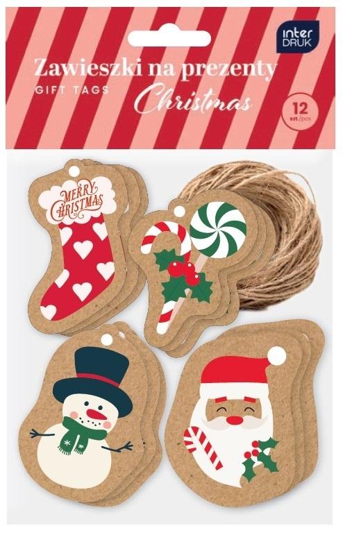 Zawieszki na prezent 12szt Kraft Christmas