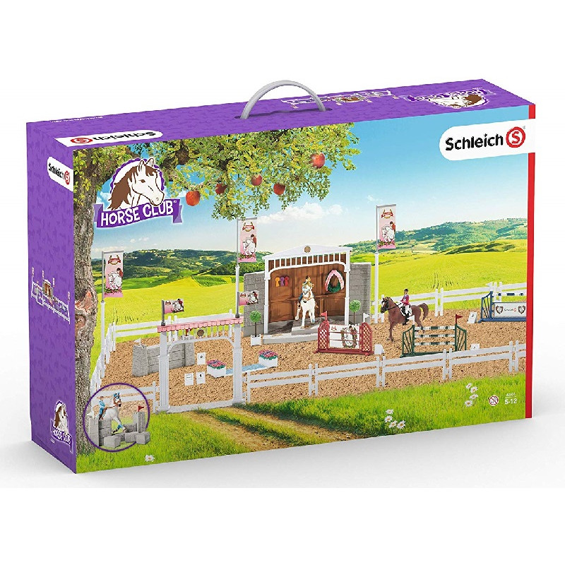 Zorganizuj prawdziwe zawody jeździeckie, w których będą mogli wziąć udział wszyscy jeźdźcy nie bojący się przeszkód i wyboistych terenów. Ogromny zestaw marki Schleich pozwoli na zbudowanie toru z przeszkodami, z którymi będą musieli poradzić sobie wszyscy uczestnicy zawodów. Przeszkody wykonane zostały z różnych materiałów, mają różną wysokość i rozpiętość – im dalej, tym oczywiście trudniej. Zawodnik, którego koń otrzyma najwyższą liczbę punktów i bezbłędnie pokona wszystkie trudności tej trasy, będzie mógł stanąć na najwyższym stopniu podium. Zwycięski okaz zostanie obdarowany zielonym wieńcem ze wstęgą.