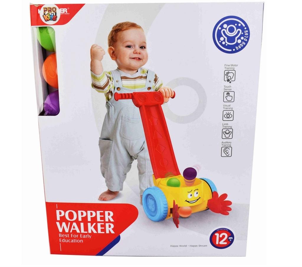 Zestaw zawiera pchacz oraz kolorowe piłeczki. Podczas pchania zabawki przez maluszka ruszają się rączki z przodu pojazdu które nabierają piłeczki do zbiorniczka.