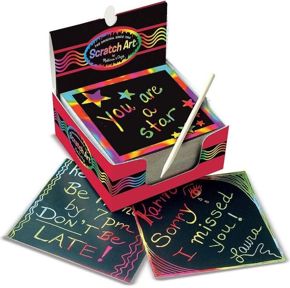 Kreatywne dzieci mogą robić notatki, rysować gryzmoły i tworzyć własne ekscytujące arcydzieła dzięki małym karteczkom do zdrapywania Mini Scratch Art Notes. Zestaw zawiera 125 Rainbow Mini Notes, drewniany rysik i poręczny dozownik biurkowy, aby wszystko było uporządkowane. Rób notatki, wydrapuj gryzmoły i twórz fajne ilustracje i projekty Zawiera 125 Rainbow Mini Notes i drewniany rysik Jasne kolory kryją się pod matową powłoką - użyj drewnianego rysika, aby kolory wyszły na wierzch za pomocą prostego zadrapania Pudełko wielokrotnego użytku dozownik biurkowy Łatwy w użyciu, niesamowite rezultaty Dzieci w wieku od czterech lat robią notatki, wytrawiają gryzmoły, tworzą fajne ilustracje i projekty, zaskakują ludzi, oznaczają rzeczy, tworzą listy, dodają do projektów artystycznych i rzemieślniczych i swobodnie wyrażają siebie. Biurkowy dozownik wielokrotnego użytku zawiera 125 Rainbow Mini Notes i drewniany rysik do drapania wzorów lub notatek. Karteczki do zdrapywania świetnie nadają się również do sal lekcyjnych, toreb z upominkami, świątecznych smakołyków, koszy z upominkami, przypomnień, działań związanych z podróżą, przypadkowych aktów dobroci, słodkich notatek dla innych i wielu innych zastosowań! Zainspiruj się i dodaj trochę koloru do czyjegoś dnia dzięki ekspresyjnej i kreatywnej Rainbow Mini Note!