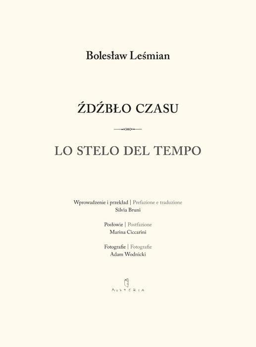 Polsko-włoskie wydanie wyboru wierszy Bolesława Leśmiana, w przekładzie Silvii Bruni, z fotografiami Adama Wodnickiego i z posłowiem Mariny Ciccarini.