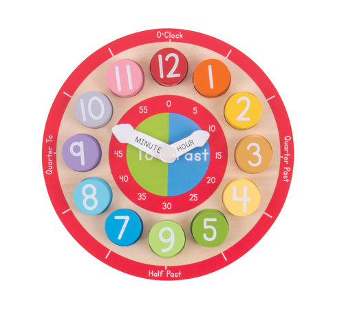 Świetny, wysokiej jakości, drewniany zegar do nauki liczenia, cyfr oraz odmierzania czasu. Uczy nie tylko wskazywania godzin i minut za pomocy wskazówek, ale także liczb. Pomaga też w nauce pojęć typu kwadrans po, przed, itp.