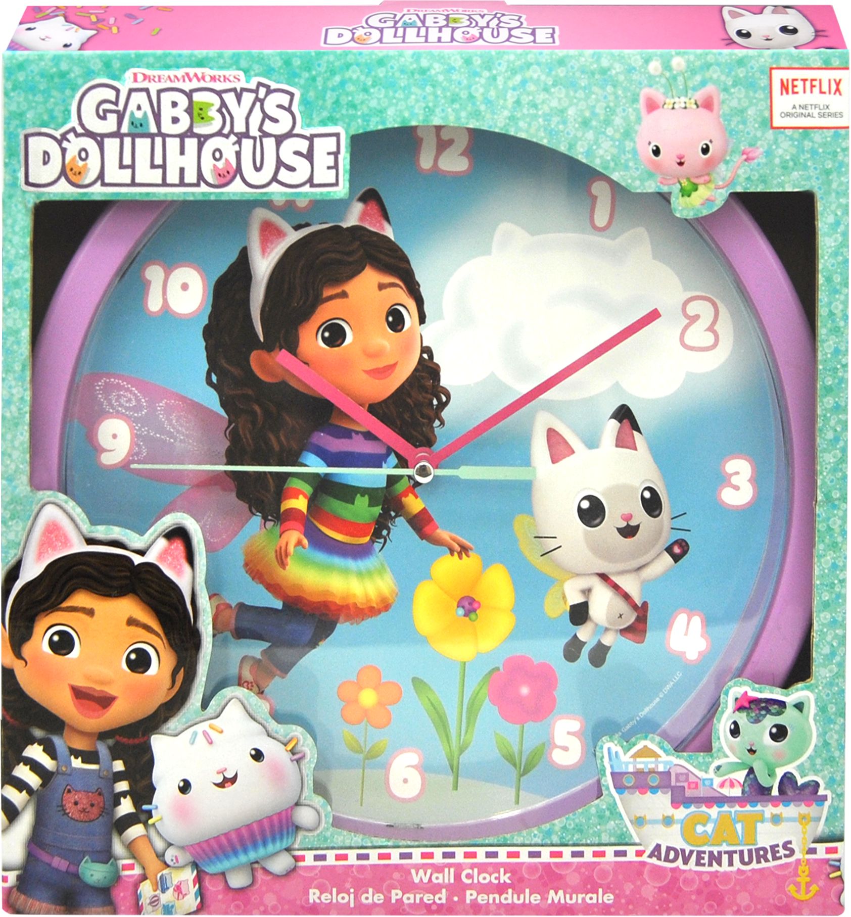Zegar ścienny Gabby's Dollhouse to niezbędny element wystroju pokoju dziecka, ktore jest wielbicielem przygód bohaterów tej sagi dla dzieci. Zestaw zawiera :