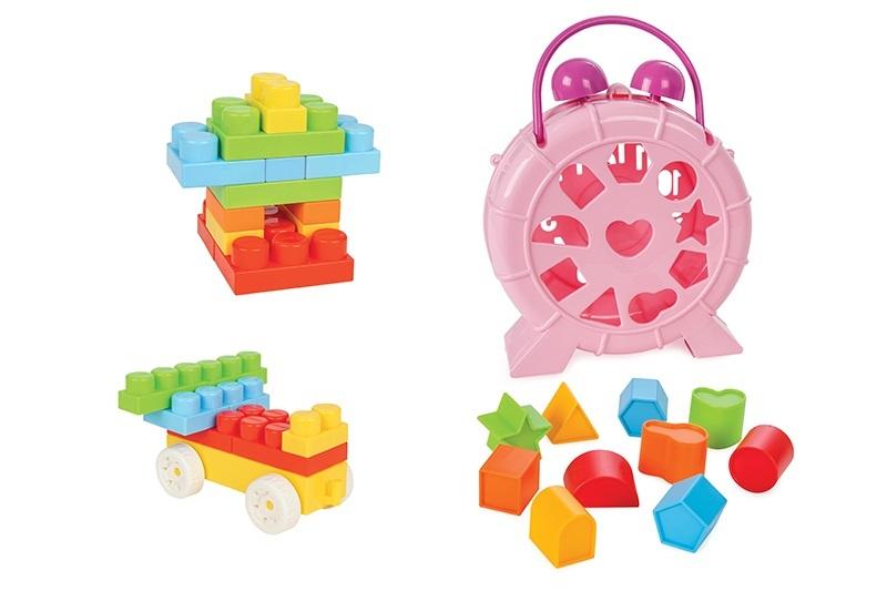 • 10 klocków do sortera w różnych kształtach i kolorach,