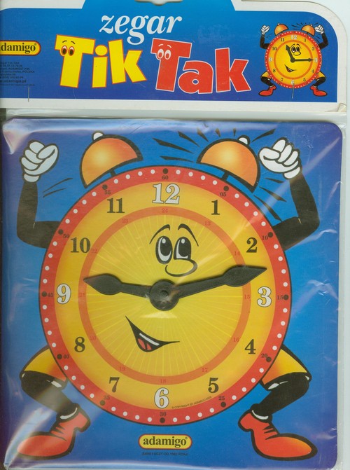 Zegar tik-tak to pomoc dydaktyczna, dzięki której Twoje dziecko nauczy się posługiwać zegarem. Kolorowy zegar posiada plastikowe wskazówki, które można ustawiać w dowolny sposób. Zegar cyka tik-tak Nie tak, nie siak, a jak? Szybciutko biegnie czas i goni, wciąż goni nas! Zabawka przeznaczona dla dzieci powyżej lat 6.