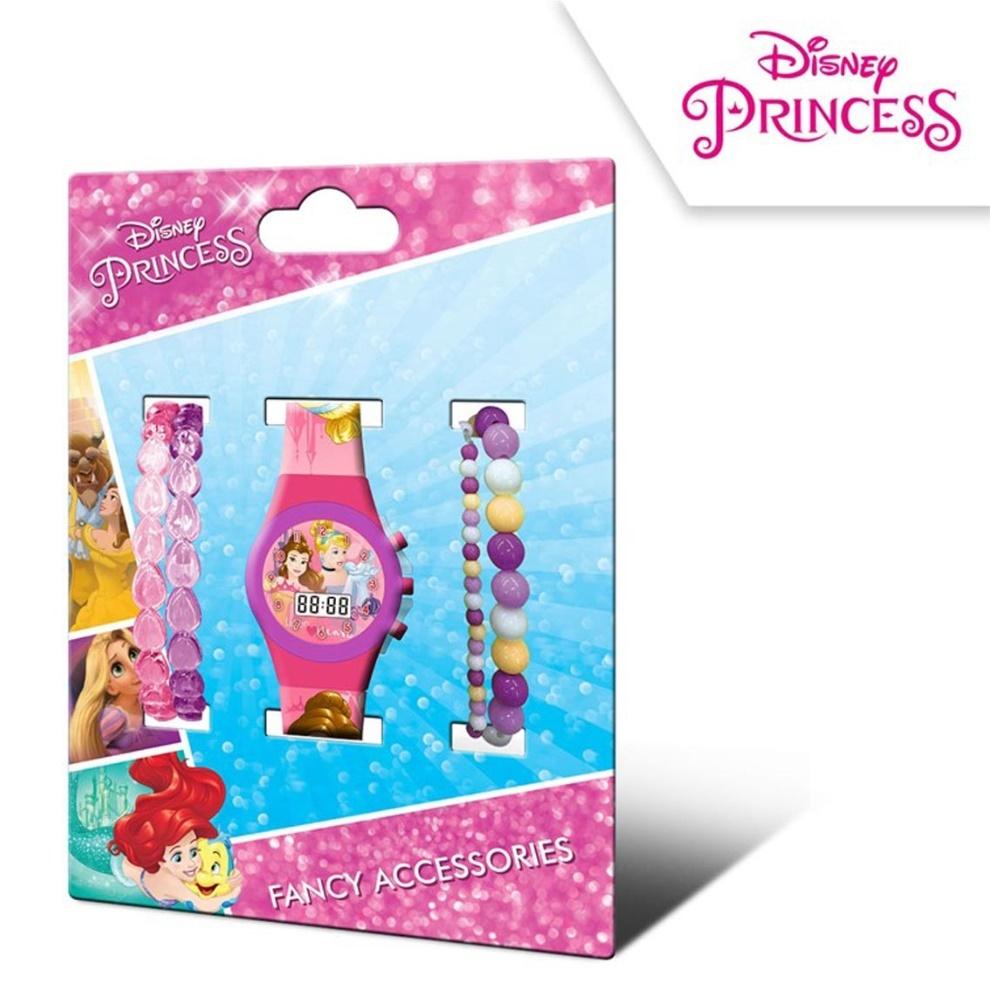 Księżniczki Disneya, Zegarek Elektroniczny Plus Zestaw Bransoletek. Oryginalny licencjonowany zegarek elektroniczny Disneya z wizerunkami Księżniczek. Zegarek posiada tarczę elektroniczną oraz mechanizm kwarcowy zasilany pojedynczą baterią. Zestaw składa się z cyfrowego zegarka z regulacją i 4 różnych bransoletek na gumce. Zaprojektowany bardzo starannie. Zestaw idealny na prezent. Wymiary: średnica tarczy - 3 cm, długość paska - 22 cm. UWAGA: Zawiera małe elementy, których połknięcie grozi niebezpieczeństwem.