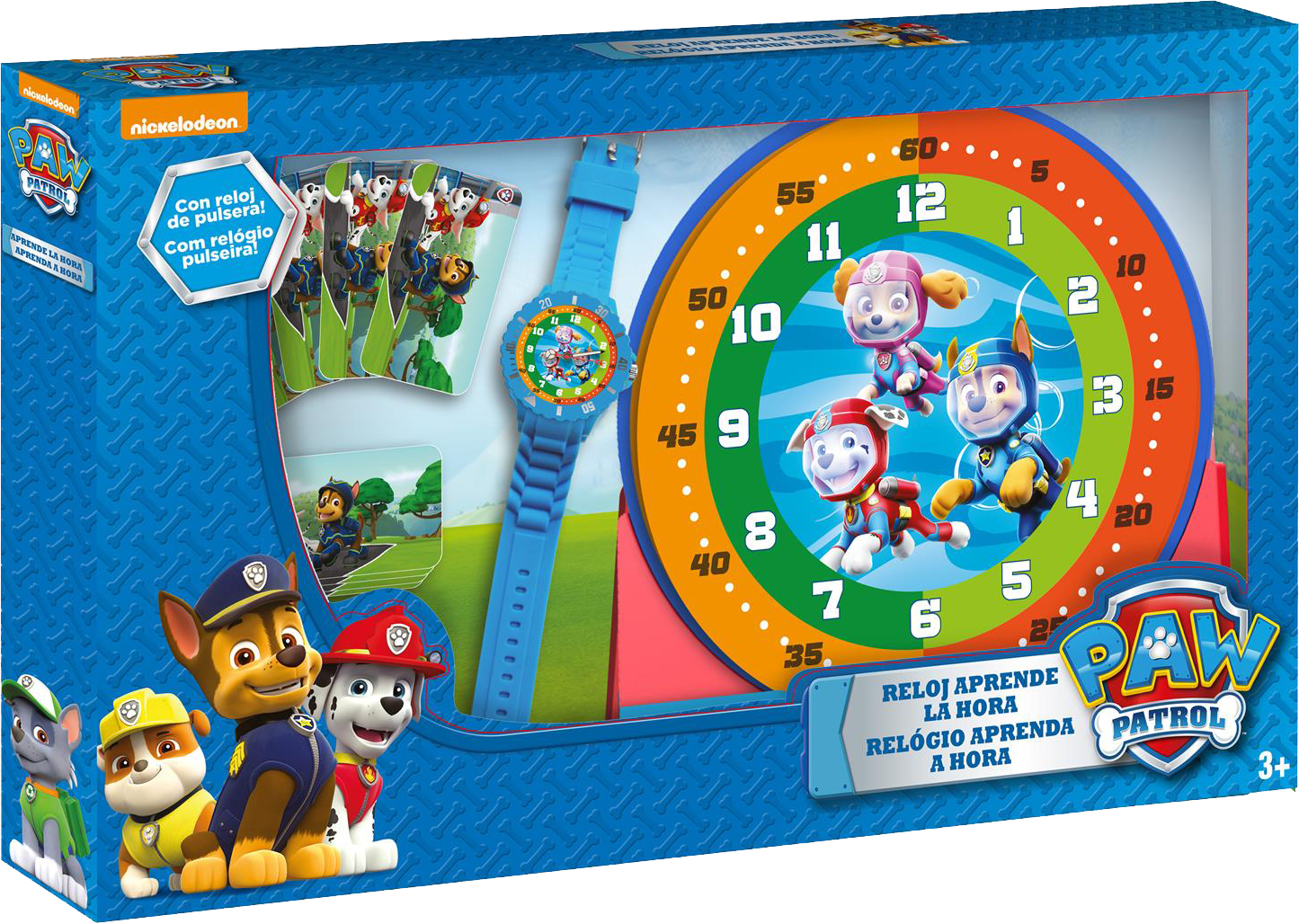 Zestaw z zegarkiem Psi Patrol , zegarem do nauki i kartami do gry to doskonały komplet , który pomoże Tobie i dziecku odkrywać tajniki „czasu”.