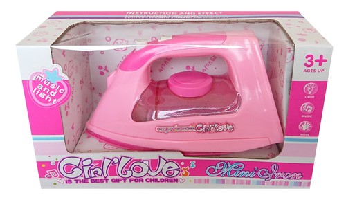 Plastikowa zabawka- żelazko 20 cm ze spryskiwaczem, światłem i dźwiękiem. Dla dzieci w wieku od 3 lat.