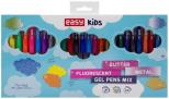 Długopis żelowy z brokatem: -grubośc wkładu: 1,0mm -ilość kolorów: 24 mix metal/fluo/glitter -wygodny, gumowany uchwyt -żywe, przyciagające kolory