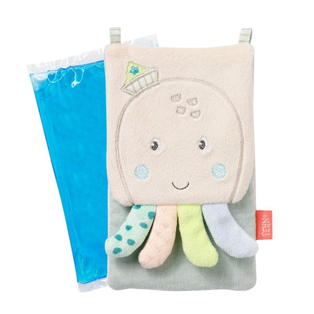 Praktyczny, żelowy kompres w miękkim pokrowcu z wizerunkiem Ośmiornicy, jest wszechstronny i idealny do codziennego użytku. Łagodzi ból, zmniejsza obrzęk, odpręża, poprawia krążenie; uspokaja i koi maluchy. Wkład można schłodzić w lodówce lub zamrażarce, bądź ogrzać w mikrofalówce lub kąpieli wodnej. Kompres doskonale przylega do ciała dziecka, a różne struktury materiałów pobudzają zmysł dotyku. Uroczy pokrowiec Ośmiornica, może być również idealną zabawką w łóżeczku, wózku, nosidełku i przytulanką do spania. Praktyczne zapięcie na rzep z tyłu pokrowca, pozwala dowolnie usuwać żelowy wkład do ogrzania lub schłodzenia. Ośmiornica ta jest super wygodna. Uspokaja i pociesza maluchy w łóżeczku, nosidełku lub wózku dziecięcym